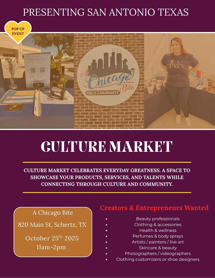 Come out this weekend to the very first Culture Market, taking place this Saturday, October 25th, 2025 from 11am-2pm at Chicago Bite.