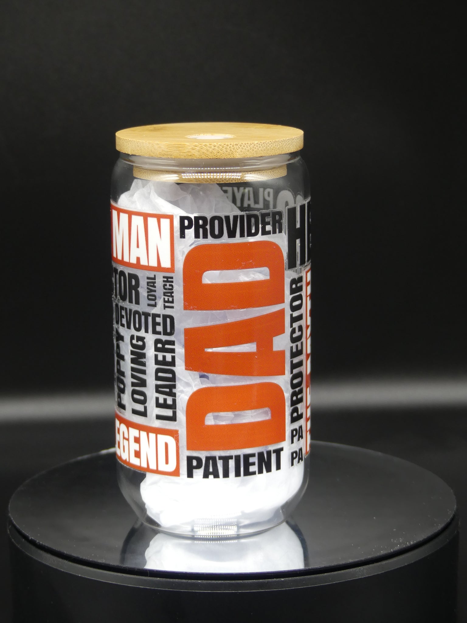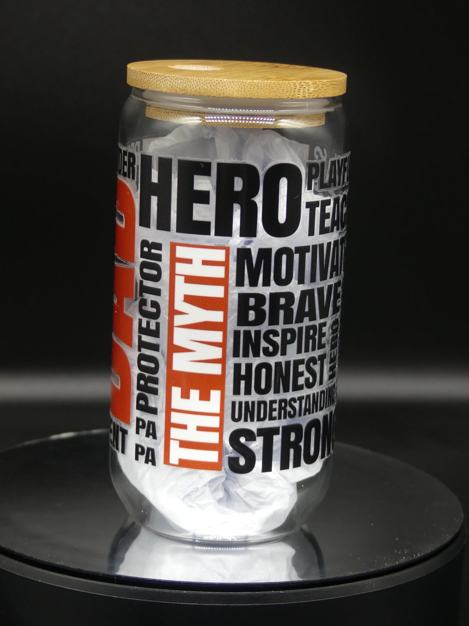 The following product is a 16oz Libbey drinking glass decorated with the following design. It comes with a bamboo top and and glass drinking straw. Hand washing safe, BPA and lead free. Suitable for both cold and hot drinks.