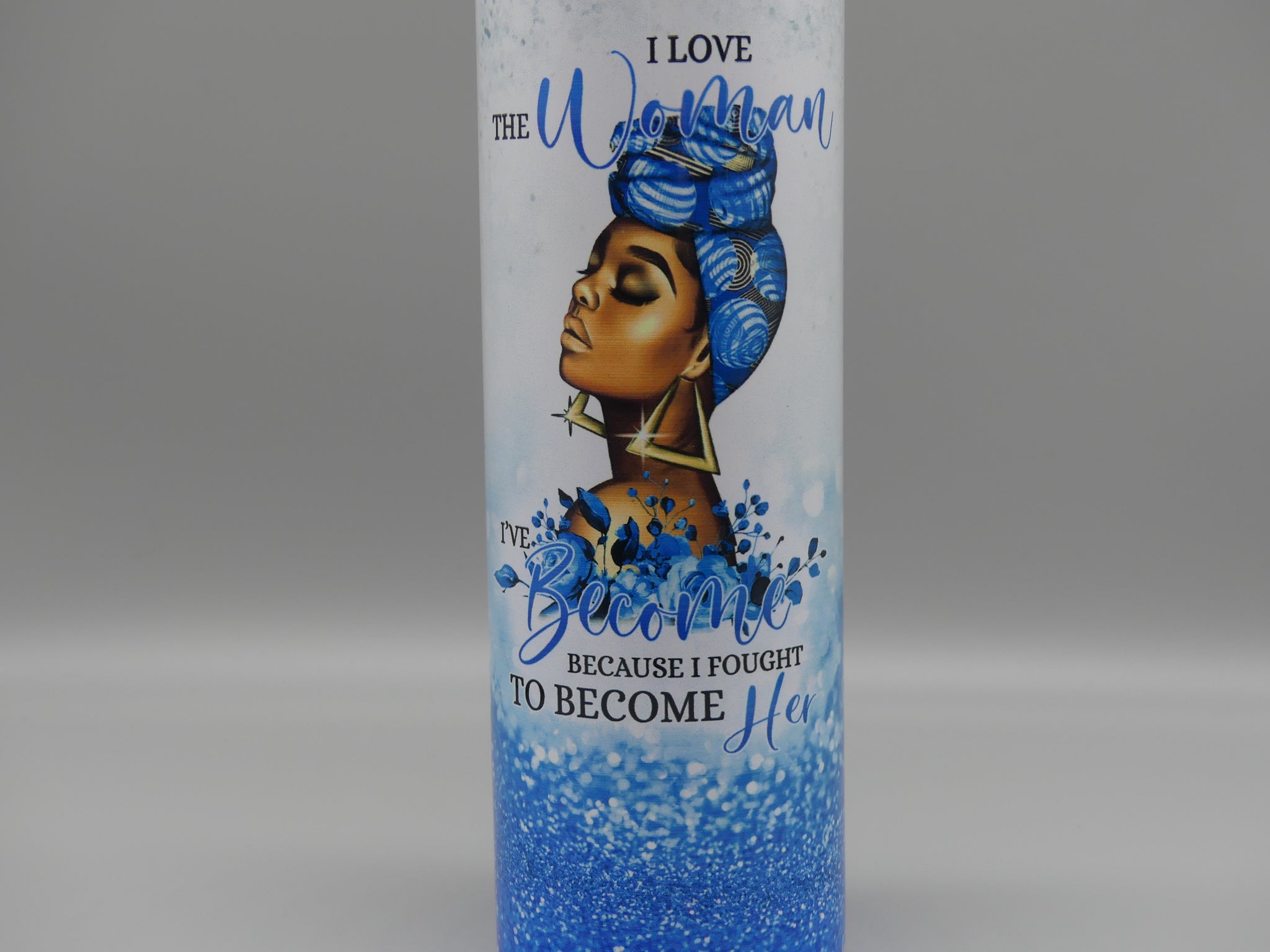 The following product is a 20oz double walled skinny tumbler decorated with the following design. It comes with a clear top. Hand washing safe, BPA and lead free. Suitable for both cold and hot drinks.